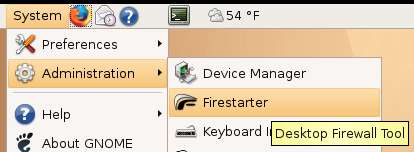 หลังจากการติดตั้งเสร็จสิ้นคุณสามารถค้นหา GUI การดูแลระบบได้ที่ System \ Administration \ Firestarter: