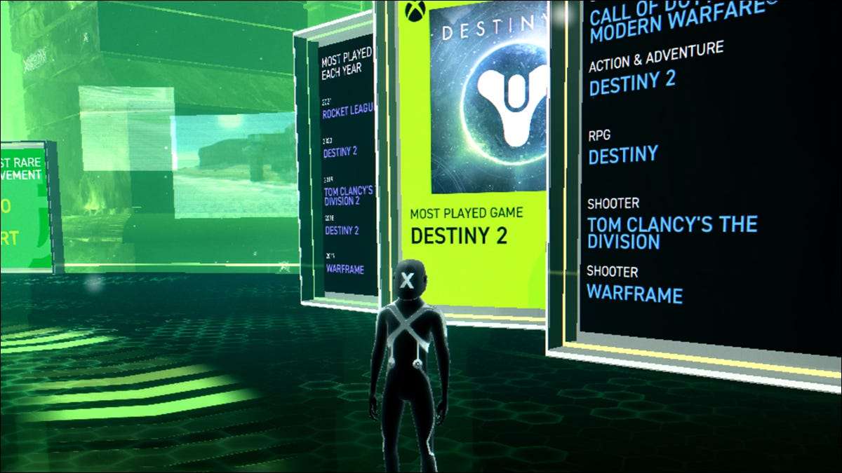 เย็นพอ ๆ กับการสำรวจพิพิธภัณฑ์เสมือนจริงซึ่งสิ่งต่าง ๆ ได้รับความเรียบร้อยเป็นส่วนบุคคลของประสบการณ์ คุณสามารถมองย้อนกลับไปที่สถิติ Xbox ของคุณในช่วงหลายปีที่ผ่านมา คุณสามารถดูว่าเกมใดที่คุณเล่นก่อน คอนโซล Xbox จำนวนเกมทั้งหมดที่คุณเล่นและอื่น ๆ ตัวอย่างเช่นฉันเล่นเกม 302 เกมข้าม Xbox Consoles และฉันเล่น Destiny 2 มากกว่าเกมอื่น ๆ