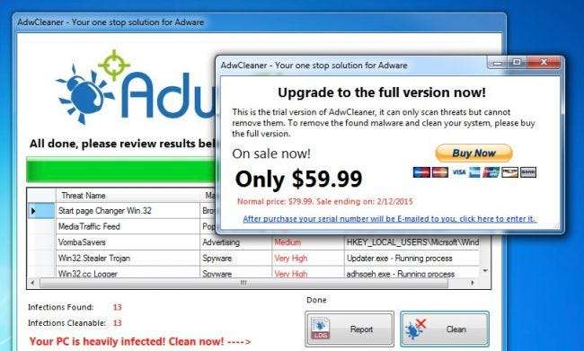 แนวโน้มล่าสุดในระบบนิเวศของ Windows ที่น่ากลัวนั้นค่อนข้างไร้สาระ - นักต้มตุ๋นมีเครื่องมือ AdwCleaner ที่มีชื่อเสียงซึ่งเป็นเครื่องมือจริงสำหรับผู้เชี่ยวชาญ Windows และสิ่งนี้แกล้งทำเป็นว่าคอมพิวเตอร์ของคุณติดไวรัสและพยายามให้คุณจ่ายเงินเพื่อลบออก
