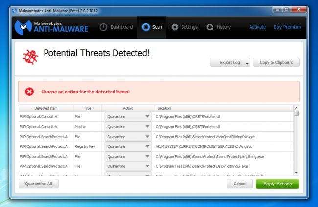 ดังนั้นผลิตภัณฑ์เดียวที่ดีจริงๆในตลาดที่จะค้นหาและลบสปายแวร์แอดแวร์และมัลแวร์อื่น ๆ คือ Malwarebytes . โชคดีที่พวกเขามีเวอร์ชันฟรีที่จะช่วยให้คุณล้างข้อมูลและลบทุกอย่างได้หากคุณต้องการจ่ายสำหรับเวอร์ชันเต็มที่มีการป้องกันที่ใช้งานอยู่เพื่อป้องกันไม่ให้สิ่งเหล่านี้เกิดขึ้นก็ใช้ได้