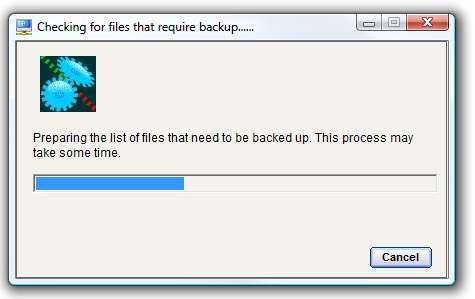 หน้าจอความคืบหน้าปรากฏขึ้นในขณะที่ IDrive เตรียมไฟล์สำหรับการสำรองข้อมูล