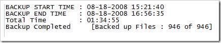 บันทึกเป็นเอกสารข้อความยาวของทุกไฟล์ที่สำรองข้อมูล สิ่งนี้จะค่อนข้างยาวถ้าคุณมีข้อมูลสำรองมาก ส่วนที่สำคัญที่สุดที่ต้องสังเกตคือที่ด้านล่างซึ่งจะตรวจสอบเวลาเริ่มต้นและเวลาหยุดและการสำรองข้อมูลทั้งหมดทำได้สำเร็จ