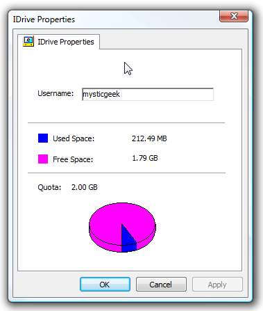 ฉันขับ สร้างไดรฟ์ประเภทเสมือนบนคอมพิวเตอร์ของคุณ หากคุณเข้าไปที่ My Computer คุณจะเห็นมันเป็นไดรฟ์บนเครือข่ายและคุณสามารถเลือกคุณสมบัติเพื่อดูว่ามีพื้นที่ว่างมากเพียงใดโดยไม่ต้องเปิด IDrive Classic หรือเรียกดูเว็บไซต์