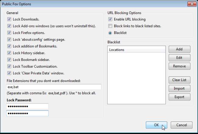 หากคุณต้องการ จำกัด เว็บไซต์ที่บุตรหลานของคุณหรือสมาชิกในครอบครัวหรือเพื่อนคนอื่น ๆ สามารถเยี่ยมชมได้เมื่อท่องอินเทอร์เน็ตบนคอมพิวเตอร์ของคุณคุณสามารถใช้ สุนัขจิ้งจอกสาธารณะ ส่วนขยายใน Firefox เพื่อบล็อกการดาวน์โหลดและเว็บไซต์และป้องกันไม่ให้เกิดการเปลี่ยนแปลงในเบราว์เซอร์ มันล็อคส่วนเสริมการตั้งค่าเกี่ยวกับการตั้งค่าการกำหนดค่าและบุ๊กมาร์ก คุณใช้รหัสผ่านกับส่วนขยายดังนั้นผู้ใช้จึงไม่สามารถปิดข้อ จำกัด เหล่านี้ได้