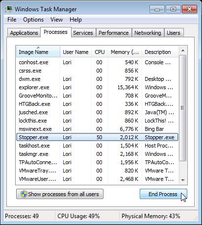 หมายเหตุ: เราขอแนะนำให้คุณเปลี่ยนชื่อไฟล์. exe ก่อนที่จะเรียกใช้ดังนั้นผู้ใช้คอมพิวเตอร์ที่มีความเข้าใจของคุณจะสับสนเมื่อดูในตัวจัดการงาน พวกเขาไม่ควรบอกได้ว่ากระบวนการใดคือ Stopper หากพวกเขามีความรู้เพียงพอที่จะเข้าสู่ Task Manager เราทิ้งชื่อไฟล์. exe ไว้เป็น Stopper.exe ในภาพด้านล่างเพื่อเป็นภาพประกอบ