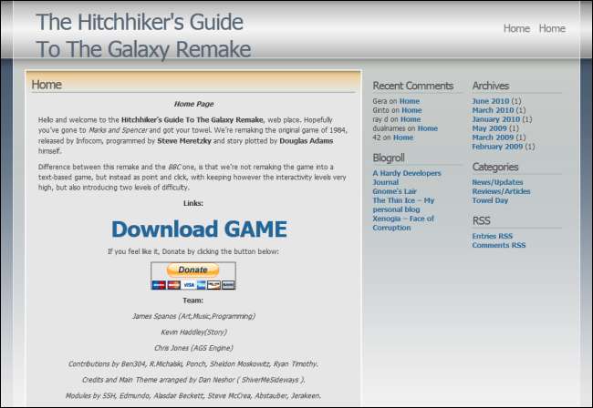 คุณมีผ้าขนหนูไหม ถ้าไม่คุณควรซื้อ ตอนนี้คุณสามารถเล่นรีเมคจากต้นฉบับได้แล้ว Hitchhiker’s Guide to the Galaxy เกมผจญภัยข้อความจากปี 1984 วางจำหน่ายโดย Infocom เขียนโปรแกรมโดย Steve Meretzky และวางแผนโดย Douglas Adams เอง เกมเวอร์ชันนี้เป็นเกมแบบชี้แล้วคลิก แต่ระดับการโต้ตอบสูงและมีความยากสองระดับ