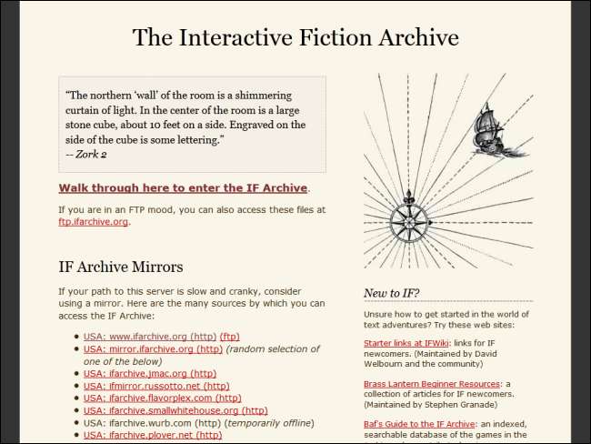 คลังนิยายเชิงโต้ตอบ (IF) เป็นที่ตั้งของเกม IF เครื่องมือในการพัฒนาโซลูชันเกมและตัวอย่างการเขียนโปรแกรมที่สนับสนุนโดยชุมชนนิยายเชิงโต้ตอบ คุณยังสามารถเข้าถึงกลุ่มข่าว Usenet rec.arts.int-fiction และ rec.games.int-fiction ได้จากไซต์นี้