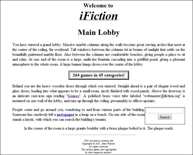 iFiction เสนอเกมผจญภัยแบบข้อความที่คุณสามารถเล่นออนไลน์ได้ ไซต์นี้ได้รับการตั้งค่าในรูปแบบการผจญภัยแบบข้อความ คลิก "เกม" เพื่อเข้าถึงเกมและ "หนังสือพิมพ์" เพื่อดูข้อมูลเพิ่มเติม