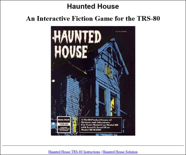 บ้านผีสิง เป็นเกมนิยายเชิงโต้ตอบที่เขียนขึ้นสำหรับ TRS-80 ไซต์นี้อนุญาตให้คุณดาวน์โหลดโปรแกรมจำลอง TRS-80 สำหรับพีซีและ Mac และ ROM เกม Haunted House TRS-80 นอกจากนี้ยังมีคำแนะนำในการเล่นเกมและวิธีแก้ปัญหาเกม