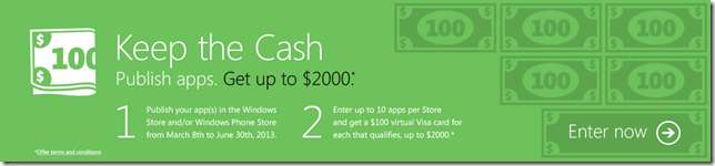 Microsoft ไม่ได้สนับสนุนแอปที่มีคุณภาพ แต่พวกเขาต้องการแค่ปริมาณ ในเดือนมีนาคม 2013 Microsoft จัดโปรโมชั่นโดยจ่ายเงินให้นักพัฒนา $ 100 สำหรับแต่ละแอพที่พวกเขาส่งไปยัง Windows Store หรือ Windows Phone Store พวกเขาจ่ายเงินมากถึง $ 2,000 ให้กับนักพัฒนาแต่ละคน นี่คือหน้าจาก Archive.org ที่อธิบายถึงไฟล์ โปรโมชั่น“ Keep The Cash” . Microsoft ได้ขัดหน้าอย่างเป็นทางการเกี่ยวกับเรื่องนี้จากเว็บไซต์ MSDN