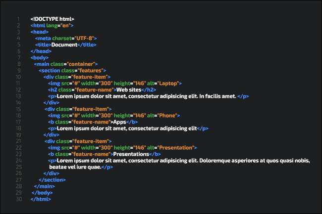 เช่นเดียวกับการเขียนโปรแกรมภาษาใด ๆ , HTML ดูเหมือนพวงของคำสั่งและบล็อกข้อความก่อนที่จะกลายเป็นด้านหน้าภาพ หากคุณอยากรู้อยากเห็นสิ่งที่ HTML ในลักษณะหน้านี้โดยเฉพาะอย่างยิ่งเหมือนคุณอยู่ในสก์ท็อปหรือแล็ปท็อปให้ลองคลิกขวาที่ใดก็ได้บนหน้านี้และเลือก“ดูหน้าแหล่งที่มา” (ตัวเลือกอาจแตกต่างกันขึ้นอยู่กับเบราว์เซอร์ของคุณ ) มันควรจะนำคุณไปยังกำแพงยักษ์ใหญ่ของรหัส