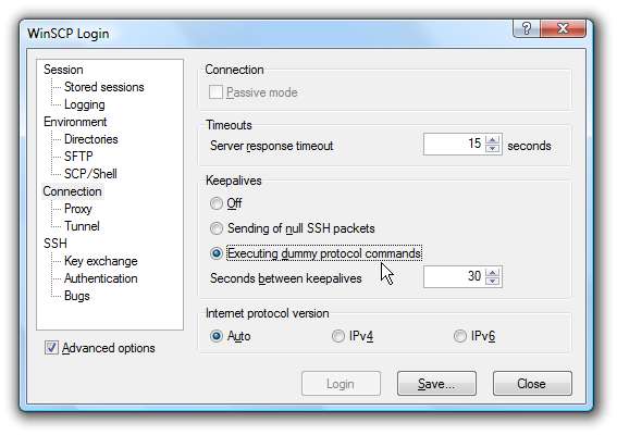 WinSCP เป็นไคลเอนต์ SCP / SFTP ที่ดีที่สุดสำหรับผู้ใช้ Windows แต่การตั้งค่าเริ่มต้นจะไม่ใช้การเก็บรักษาดังนั้นคุณจึงถูกตัดการเชื่อมต่อบ่อยเกินไป ฉันต้องการเปิดไคลเอ็นต์ทิ้งไว้ในขณะที่ฉันกำลังทำงานและสิ่งนี้ทำให้เกิดปัญหาร้ายแรงกับขั้นตอนการทำงานของฉัน