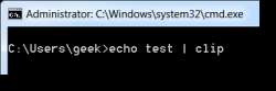 Önceki ipucu, metni komut satırından panoya kopyalamak için iki yöntem gösterdi. Aşağıdaki makale, Windows 7 ve Vista'da yerleşik olarak bulunan clip.exe yardımcı programını kullanarak size daha kolay bir yöntem gösterir. Windows XP kullanıyorsanız, makale yardımcı programı indirebilmeniz için bir bağlantı sağlar ve nereye koyacağınızı söyler.