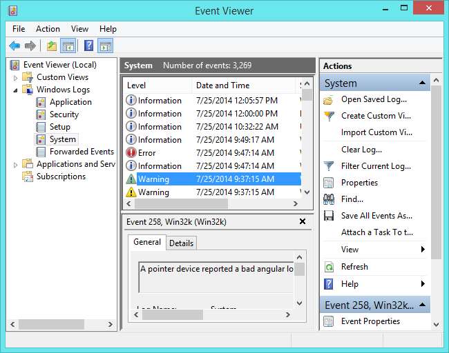 Olay Görüntüleyici Windows olay günlüğünü görüntüler. Uygulamalar, hizmetler ve Windows'un kendisi olay günlüğüne mesaj yazar. Günlüğü görüntülemek bazen bir sorunu belirlemenize ve belirli bir hata mesajına bakmanıza yardımcı olabilir, ancak buradaki mesajların çoğu önemli değildir.