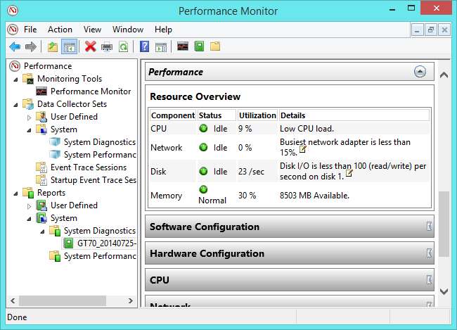 Performans İzleyicisi aracı, performans ve sistem tanılama raporları oluşturmanıza olanak sağlar. Bu araç ilginç olsa da, ortalama Windows kullanıcılarından çok sistem yöneticilerine yöneliktir.