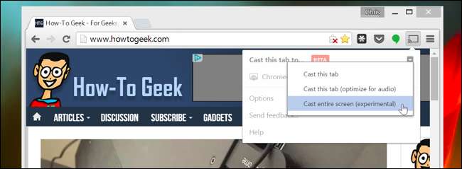 Google'ın ucuz Chromecast'i bilgisayarınızın ekranını herhangi bir kablo olmadan TV'nize taşımanın kolay bir yolunu sunar. Chromecast genellikle belirli bir uygulamadan veya web sayfasından TV'nize içerik "yayınlamak" için kullanılırken, ayrıca belirli bir tarayıcı sekmesi de yayınlayabilirsiniz. Sadece bu değil, Chromecast tarayıcı uzantısı da size bilgisayarınızın masaüstünün tamamını Chromecast'inize yayınlayın ve böylece TV'nizde izleyin.