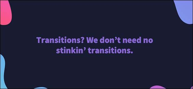 Bu, animasyonları ve geçişleri kullanamayacağınızı söylemektedir, sadece noktaları seçmeniz gerektiğini. Her sunum için bu geçişlerin bir avuçtan fazlasını hedefleyin. Ve onları gösteriye ekleyecekleri noktalarda kullanın, ondan uzak durmayın.