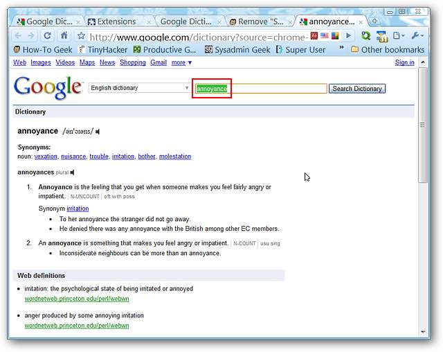 Google Chrome'da "yerleşik" aynı sekme sözlüğü referans işlevi ister misiniz? Bugün, tarayıcınızdan kelime tanımlarını kolayca bulmanızı sağlayan Google Sözlük uzantısına bakıyoruz.