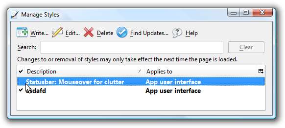 Userstyles.org'dan Durum Çubuğunu "Karmaşa için Fareyle Üzerine Gelme" Kullanıcı Stilini indirin