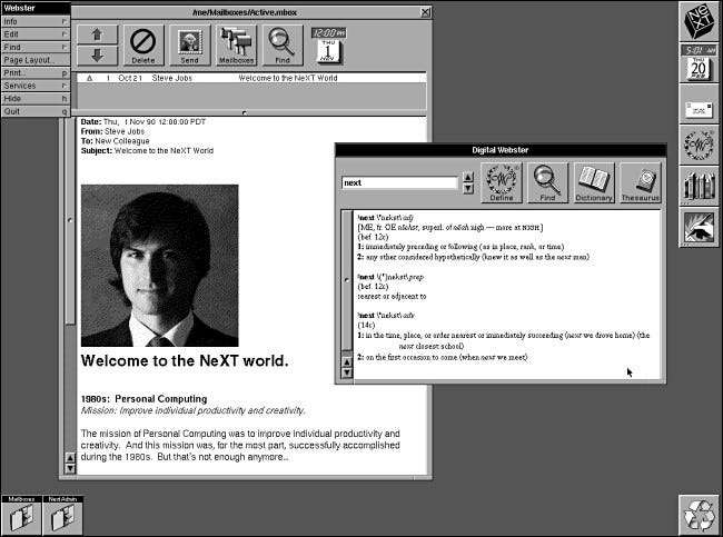 - NextSteP 2.0 önceden yüklenmiş bir Steve Jobs'dan e-posta gönder : Bir sonraki posta e-posta yazılımında görünecek ilk mesajdı.