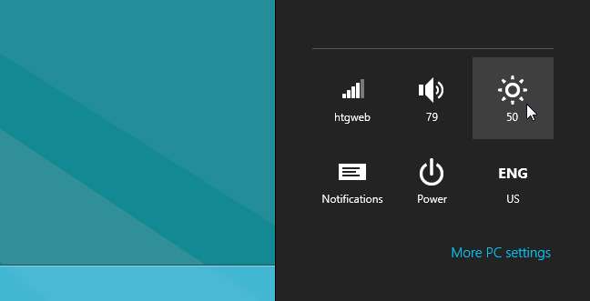 Anlaşıldığına göre, Windows 8 dizüstü bilgisayarınızda parlaklığı nasıl değiştireceğiniz burada açıklanmaktadır… Win + I kısayol tuş kombinasyonuna (bu büyük harf i) basın, ardından parlaklık kontrolünü tam orada göreceksiniz.