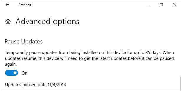 35 günün süresi dolduktan sonra veya buradaki anahtarı kullanarak güncellemeleri duraklatırsanız, Windows güncellemeleri tekrar duraklatmanıza izin vermeden önce en son güncellemeleri otomatik olarak indirir.