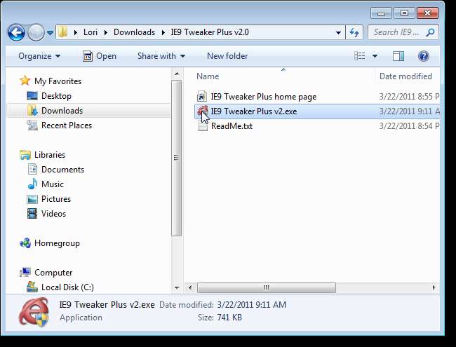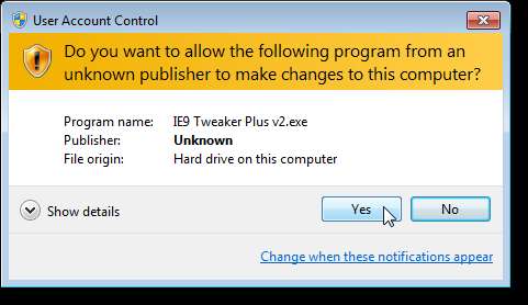 IE9 Tweaker Plus'ın kurulmasına gerek yoktur. Çalıştırmak için, indirdiğiniz .zip dosyasını çıkartın (bu makalenin sonundaki bağlantıya bakın) ve .exe dosyasına çift tıklayın.