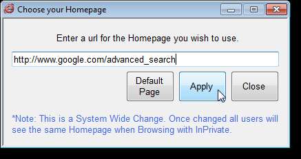 NOT: InPrivate modunun ana sayfasını varsayılana sıfırlamak için Varsayılan Sayfa'yı tıklayın.