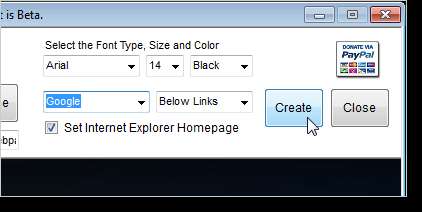 İsterseniz yazı tipini değiştirin ve isterseniz ana sayfanıza eklemek için bir arama motoru seçin. Bunu otomatik olarak ana sayfanız olarak ayarlamak için, Internet Explorer Ana Sayfasını Ayarla onay kutusunu seçin. Ana sayfanızı oluşturmak için Oluştur'u tıklayın.