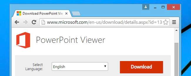 Microsoft indirme merkezine gidip PowerPoint görüntüleyici gibi bir şey almaya çalışırsanız, istediğiniz şeyi indirmek üzereymişsiniz gibi görünmesini sağlayan büyük, kırmızı bir indirme düğmesi sunulur. PowerPoint'in toplantılar anlamına geldiği ve toplantıların berbat olduğu gerçeğini görmezden geleceğiz.