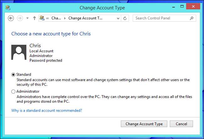 Windows'un önceki sürümlerinde olduğu gibi, hesaplar yönetici hesapları veya standart kullanıcı hesapları olabilir. Yönetici hesapları, sistem ayarlarını değiştirebilir ve programları yükleyebilirken, standart kullanıcı hesapları daha kısıtlıdır.