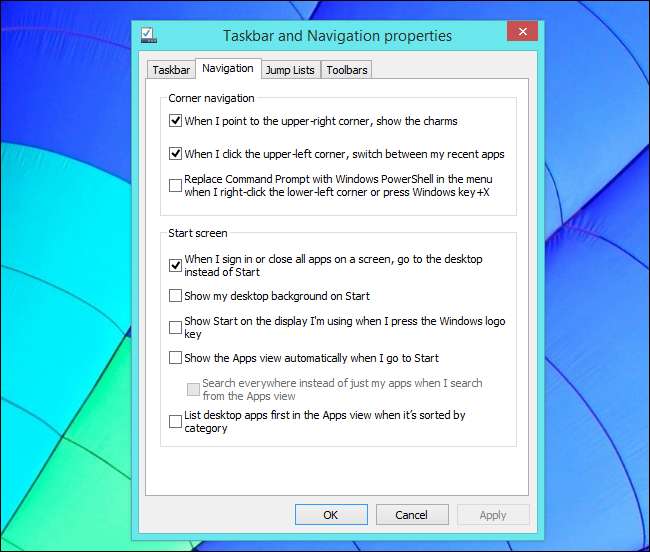 Windows 8, masaüstüne önyükleme yapmanıza hiç izin vermedi, Windows 8.1 bu seçeneği ekledi ve varsayılan olarak devre dışı bıraktı ve Windows 8.1 Güncellemesi dokunmatik ekranı olmayan PC'lerde varsayılan olarak masaüstüne önyüklemeyi etkinleştirdi. İsterseniz yine de bu ayarı kendiniz değiştirebilirsiniz.