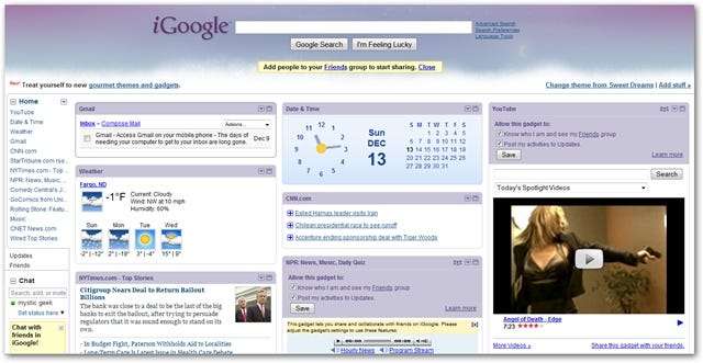 İGoogle'ın ne olduğunu bilmeyenler için, Google Arama kutusunu ve ardından kişiselleştirilmiş gadget'larınızı içeren özelleştirilebilir bir ana sayfadır. Haberler, hava durumu, Gmail, hisse senedi raporları, herhangi bir siteden RSS beslemeleri, oyunlar, film saatleri vb. Gibi ekleyebileceğiniz tonlarca farklı şey vardır. Hatta yapabilirsiniz kendi iGoogle gadget'ınızı tasarlayın Eğer istersen. Ayrıca, özel temalar seçmenize, gadget'ları hareket ettirmenize ve daha fazla gadget için yeni sekmeler oluşturmanıza olanak tanır.