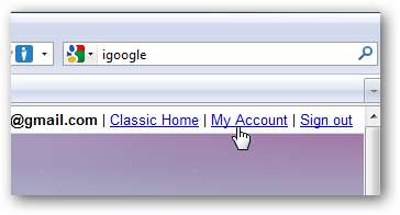 Birkaç aydır iGoogle ana sayfanızı özelleştiriyorsanız, hesabı değiştirmeniz gerekirse baştan başlamak kesinlikle acı verici olacaktır. Ayarları dışa aktarmak ve kaydetmek için Hesabım ana sayfanın sağ üst köşesinde bulunur.