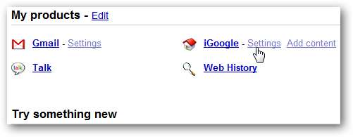 Sonra altında Ürünlerim tıkla Ayarlar yanındaki bağlantı iGoogle .