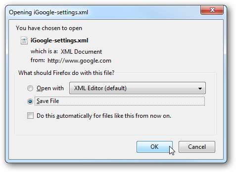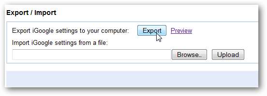 İGoogle Ayarları sayfasının sonuna kadar kaydırın ve iGoogle ayarlarını bilgisayarınıza aktarın'ı tıklayın.