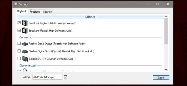 İLİŞKİLİ: Kısayol Tuşuyla Windows Ses Çıkışlarını Değiştirme