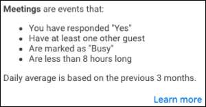 Zamanın amacı, zamanınızı nasıl geçirdiğinizi daha iyi anlamaktır. Öğrendiğiniz bilgilerin türüyle, programınıza yapılan ayarlamalar yapmaya karar verebilir veya toplantılarınızın çoğunun hangi günün yapıldığını görün. İşte zamanlar Google Takvim'de nasıl çalışır?
