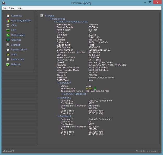 Henüz bahsedilmediğinden, Speccy bilgisayarınızın her bileşeni (dahili sürücünüz dahil) hakkında derinlemesine bilgi görmek için harikadır.