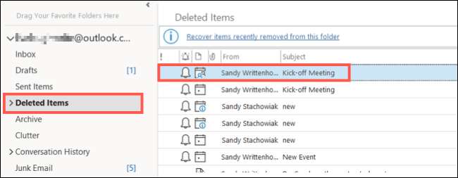 Seçiminizin platformuna Outlook'u açın ve postaya gidin. Outlook postasında Silinmiş Öğeler klasörünüzü seçin. Listenizdeki reddedilen davetiyeyi görmelisiniz.
