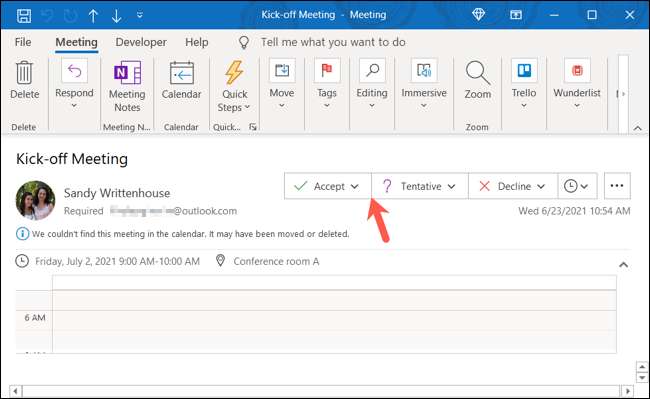 Hala emin değilseniz "Kabul Et" (veya "Geçici" seçeneğini seçin. Ve diğer davetiyelerle olduğu gibi, bir not göndermek, olduğu gibi göndermek, ya da hiç bir cevap göndermemek ve geldiğinizde herkesi şaşırtmak için yanıtı düzenleyebilirsiniz.