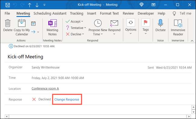 Outlook'ta reddedilen bir olay davetiyesini kabul et