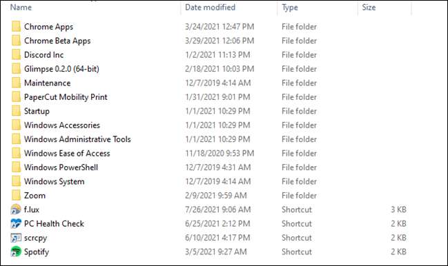 Başlangıç klasörü hemen açılacak ve muhtemelen bir sürü klasör ve program kısayollarını göreceksiniz.