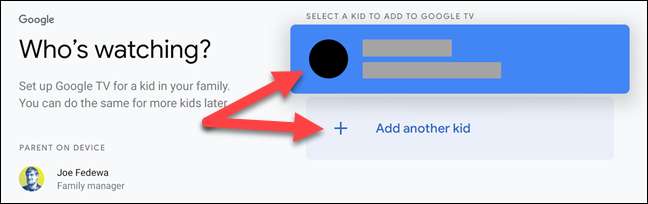 Google ailenize daha önce bir çocuk hesabı eklediyseniz, burada listelenenleri göreceksiniz. Onları seçebilirsiniz, "Başka bir çocuk ekleyin" veya "Bir çocuk ekleyin."