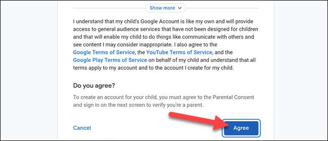 Şimdi Google'dan bazı servis şartlarını ve ebeveyn izni bilgilerini göreceksiniz. Her şeye baktıktan ve kabul ettikten sonra "Kabul Et" seçeneğini seçin.