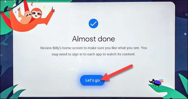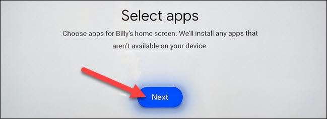 Profil artık Google TV cihazınızda oluşturulacak, bu sadece birkaç dakika sürer. Bittiğinde, yapmanız gereken ilk şey seçmek uygulamalarıdır. Devam etmek için "İleri" yi tıklayın.