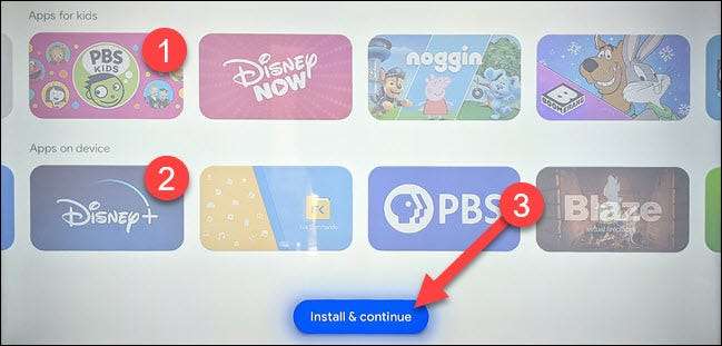 Bir satır önerilen çocuk uygulamaları ve hesabınızdan bir satır uygulama ile sunulur. Profilde sahip olmak istediğiniz herhangi bir uygulamayı seçin ve ardından "Install & Amp; Devam et."