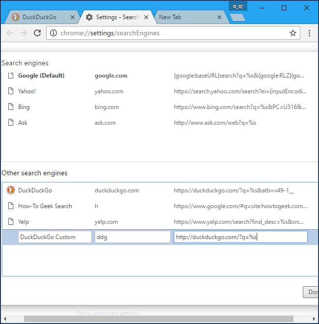 Web sitelerini daha hızlı aramak için bu anahtar kelimeleri kısaltabilirsiniz - örneğin, anahtar kelimeyi ddg olarak değiştirin ve DuckDuckGo'da daha hızlı arama yapmak için "ddg örneği" yazabilirsiniz.