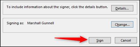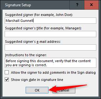 Bu dijital imzayı eklemek için imza hattını çift tıklatın. Bir açılır iletişim kutusu görünecektir. Burada, "İşareti" i tıklayın.