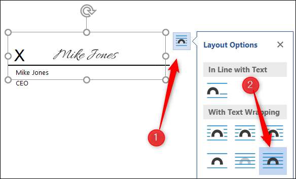 Doğru şekilde çalışması için, görüntünün sağındaki Seçenekler simgesine tıkladığınızdan emin olun ve ardından "Metin Önünde" metin sarma seçeneğini tıklatın.